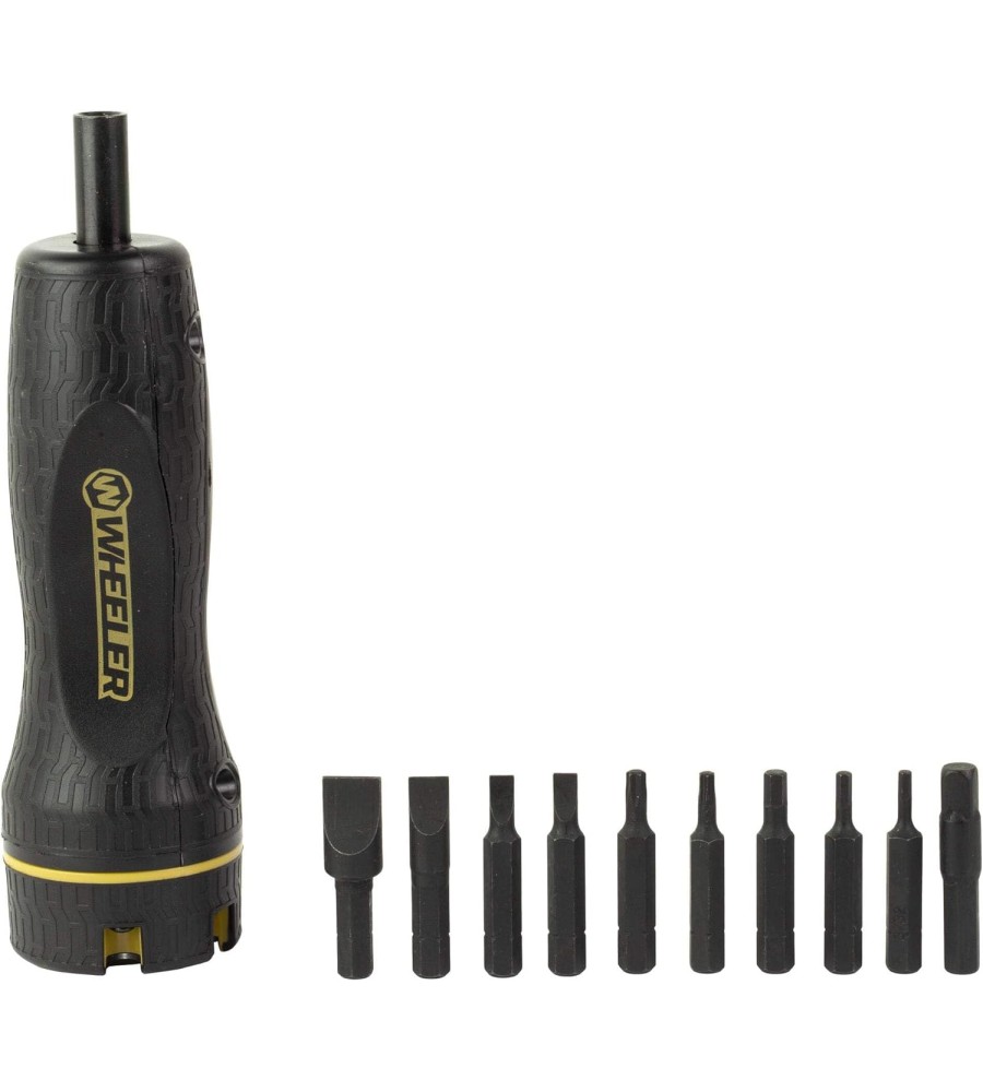 Questo straordinario wrench digitale ti consente di impostare valori di coppia ripetibili con precisione. Il Digital F.A.T. Wrench ha un ampio intervallo di regolazione della forza di serraggio che va da 5 a 100 libbre per pollice (0.56 - 11.3 Newton metri) e può gestire una varietà di compiti comuni per fucili, come l'installazione di mirini a punto rosso, il montaggio di anelli e basi per ottiche e altri elementi di fissaggio secondo le tue specifiche di forza di serraggio.